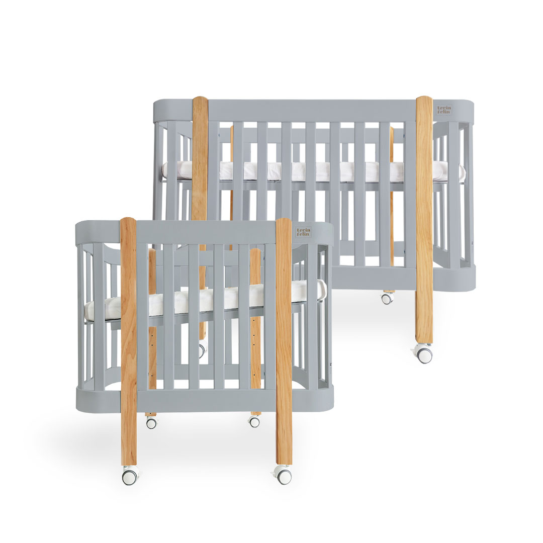 Detská antirefluxná rastúca postieľka Nika Duo – sivá s drevenými nožičkami