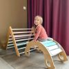 Drevená montessori hojdačka SwingMe - prírodné drevo/dúha