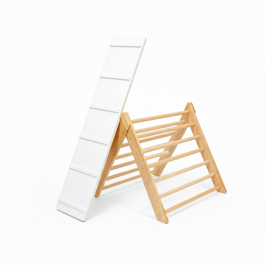 Piklerovej triangel ClimbMe – prírodné drevo s bielou doskou SlideMe