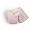Mäkká, hrejivá obojstranná deka (90 × 70 cm) je ideálna do postieľky, kočíka aj autosedačky a poskytne bábätku pocit bezpečia kdekoľvek. Dopĺňa ju dekoračný vankúš Monie z hebkého minky plyšu s bavlnenou mašľou, ktorý krásne doladí každú detskú izbičku.