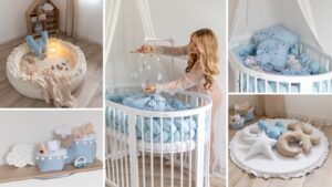 Výbavička pre chlapčeka nemusí byť len modrá. Doplnením jemných tónov smotanovej a svetlej béžovej vytvárajú nádhernú nadčasovú kombináciu. Vzor lúka len podčiarkne jedinečnosť výbavičky pre dieťatko.
